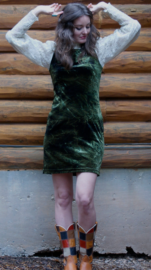 90'S VINTAGE HANDDYED VELOUR MINI DRESS // SIZE SMALL
