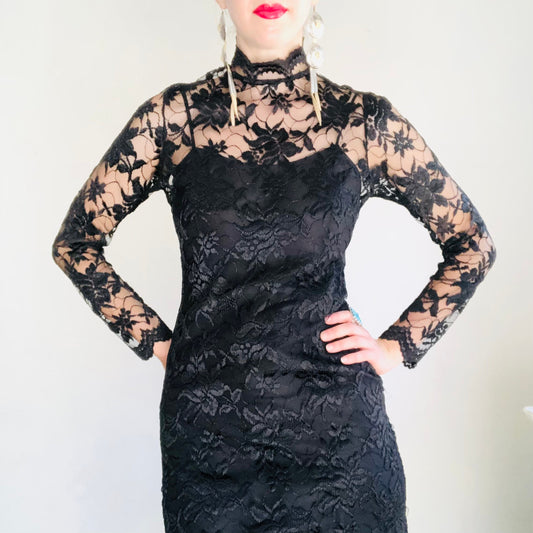 80'S VINTAGE BLACK LACE DRESS // SIZE SMALL