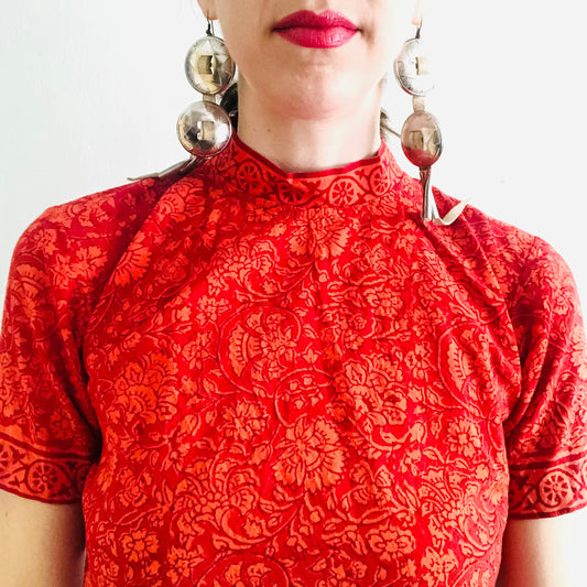 90'S VINTAGE INDIAN HANDBLOCK PRINTED DRESS // SIZE SMALL
