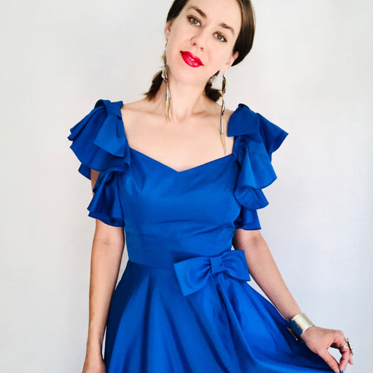 70'S VINTAGE BLUE RUFFLE MAXI DRESS // SIZE SMALL