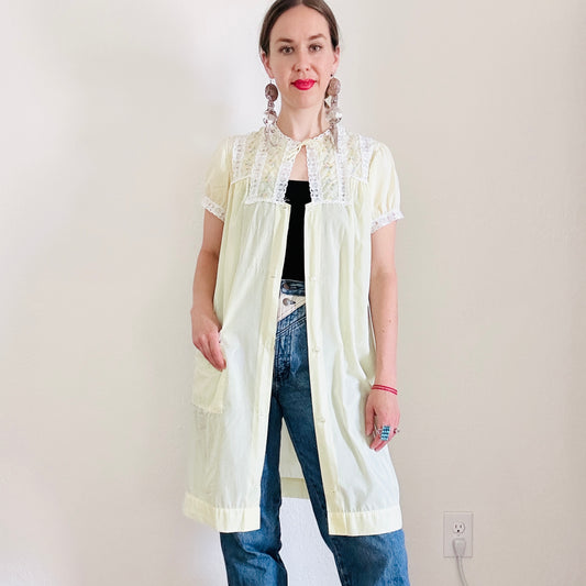 70'S VINTAGE LACE LINGERIE ROBE // SIZE SMALL