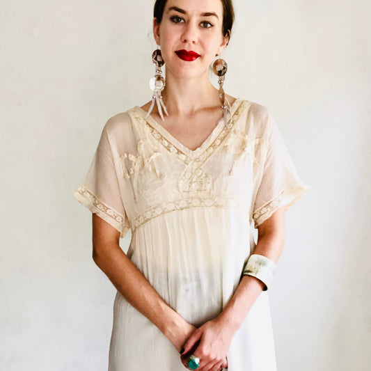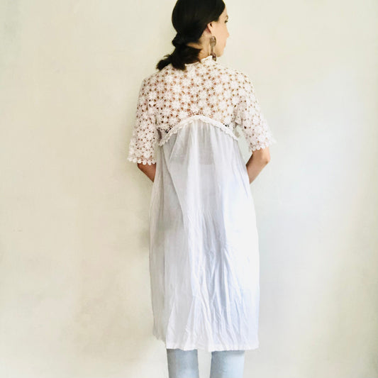 30'S VINTAGE WHITE CROCHET LINGERIE DRESS // SIZE MEDIUM