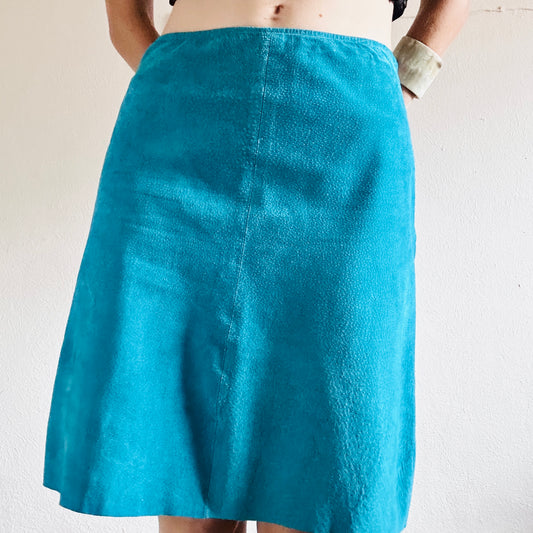 90’S VINTAGE TURQUOISE LEATHER SKIRT // SIZE MEDIUM