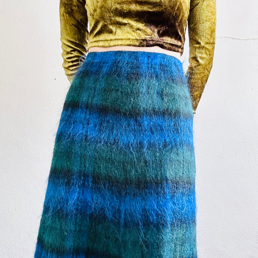 60’S VINTAGE MOHAIR PLAID SKIRT // SIZE SMALL