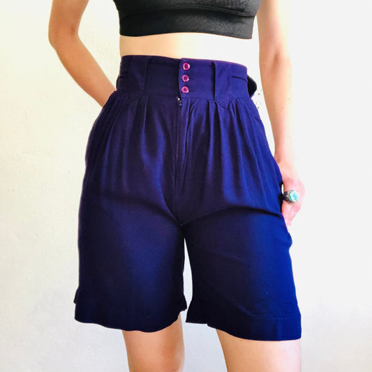80'S VINTAGE PURPLE HIGH WAISTED CULOTTES SHORTS // SIZE SMALL