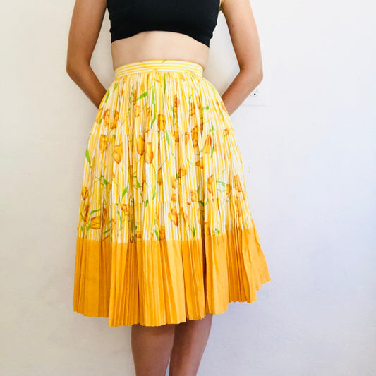 50's VINTAGE YELLOW PLEATED SKIRT // SIZE XSMALL