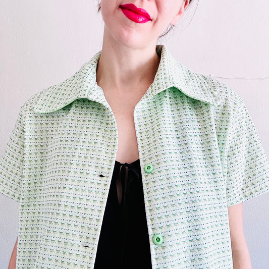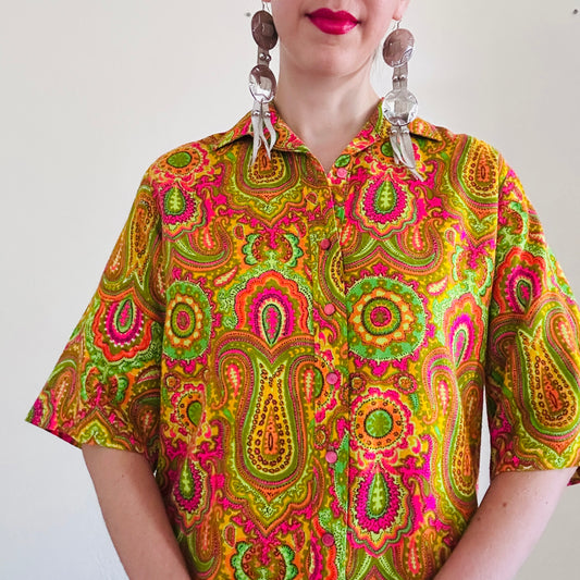 70'S VINTAGE PSYCHEDELIC BLOUSE// SIZE LARGE