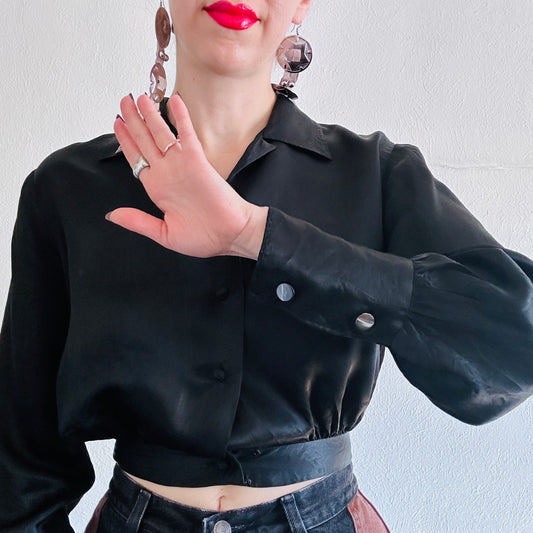 60s VINTAGE BLACK SEQUINED TOP // SIZE MEDIUM