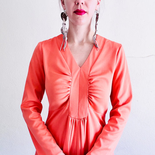 70'S VINTAGE CORAL MAXI DRESS // SIZE SMALL