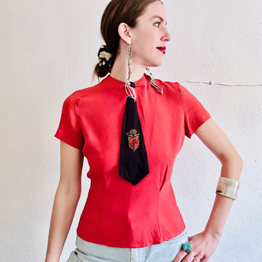 50'S VINTAGE TIE BLOUSE // SIZE SMALL