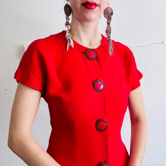 80'S VINTAGE RED BUTTON DOWN DRESS // SIZE SMALL