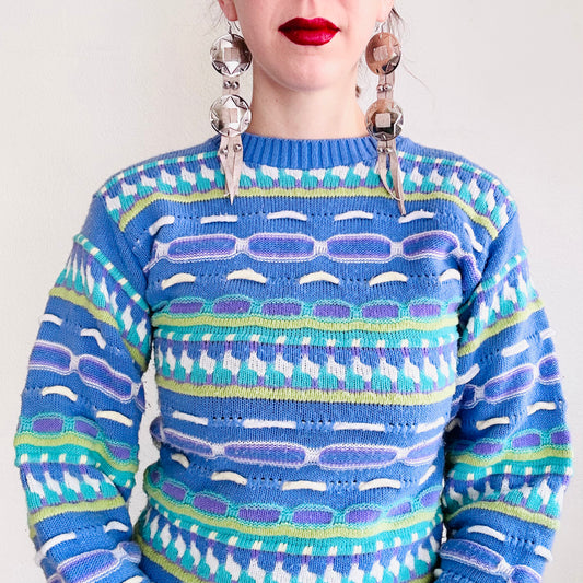 80'S VINTAGE BLUE NEW WAVE SWEATER // SIZE MEDIUM