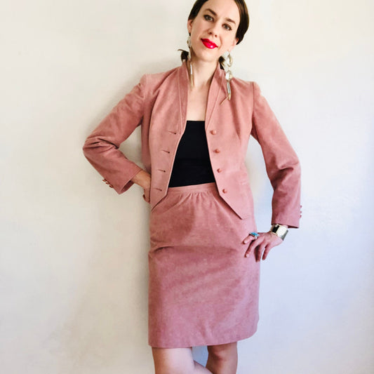 70'S VINTAGE PINK ULTRASUEDE SUIT // SIZE SMALL PETITE