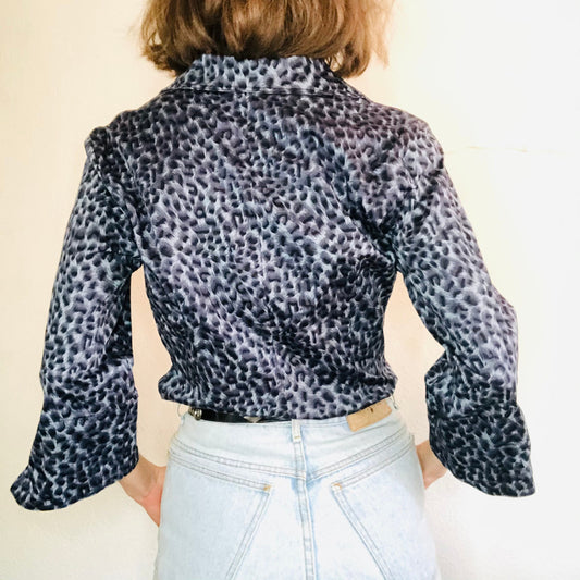 90's VINTAGE BLUE LEOPARD PRINT BLOUSE // SIZE MEDIUM