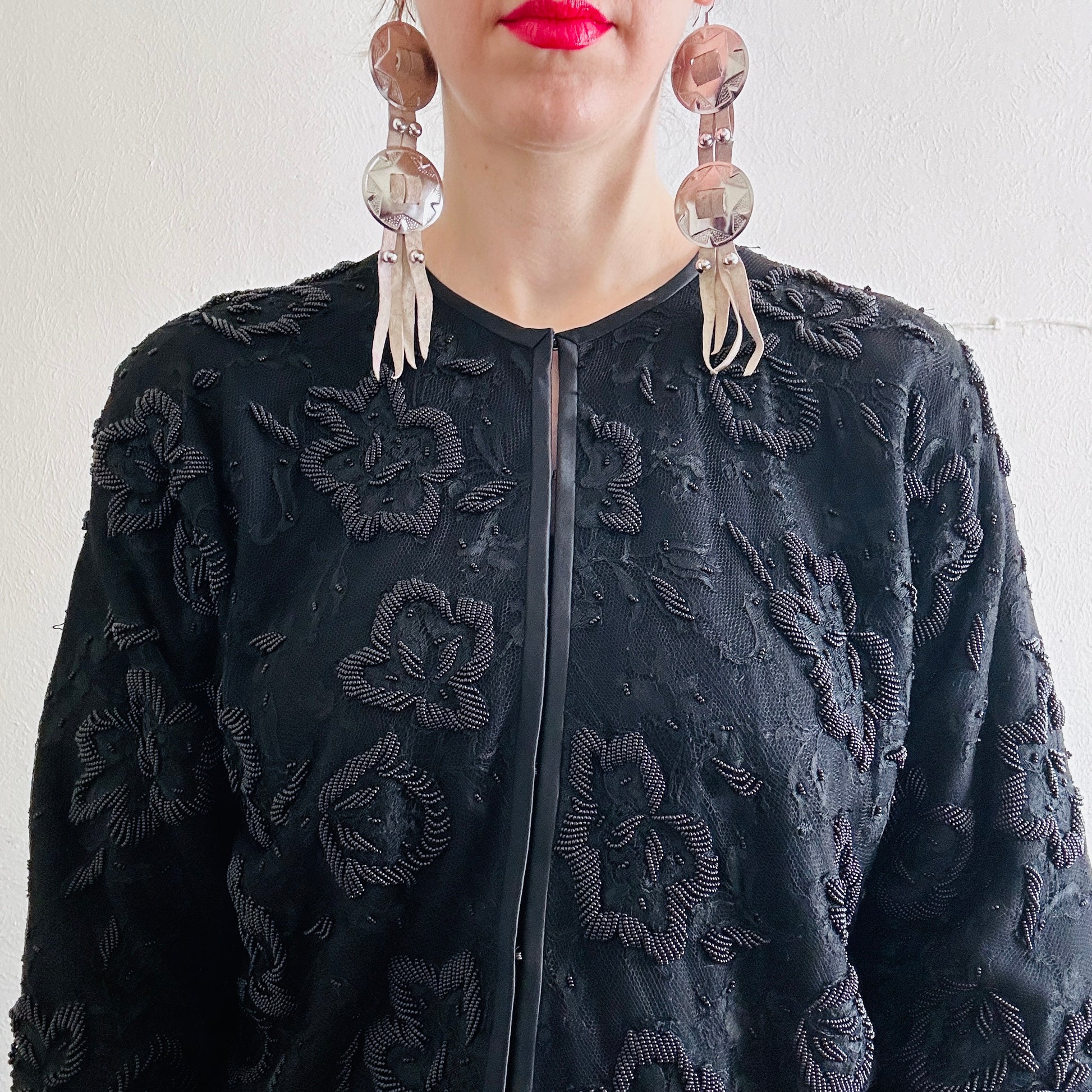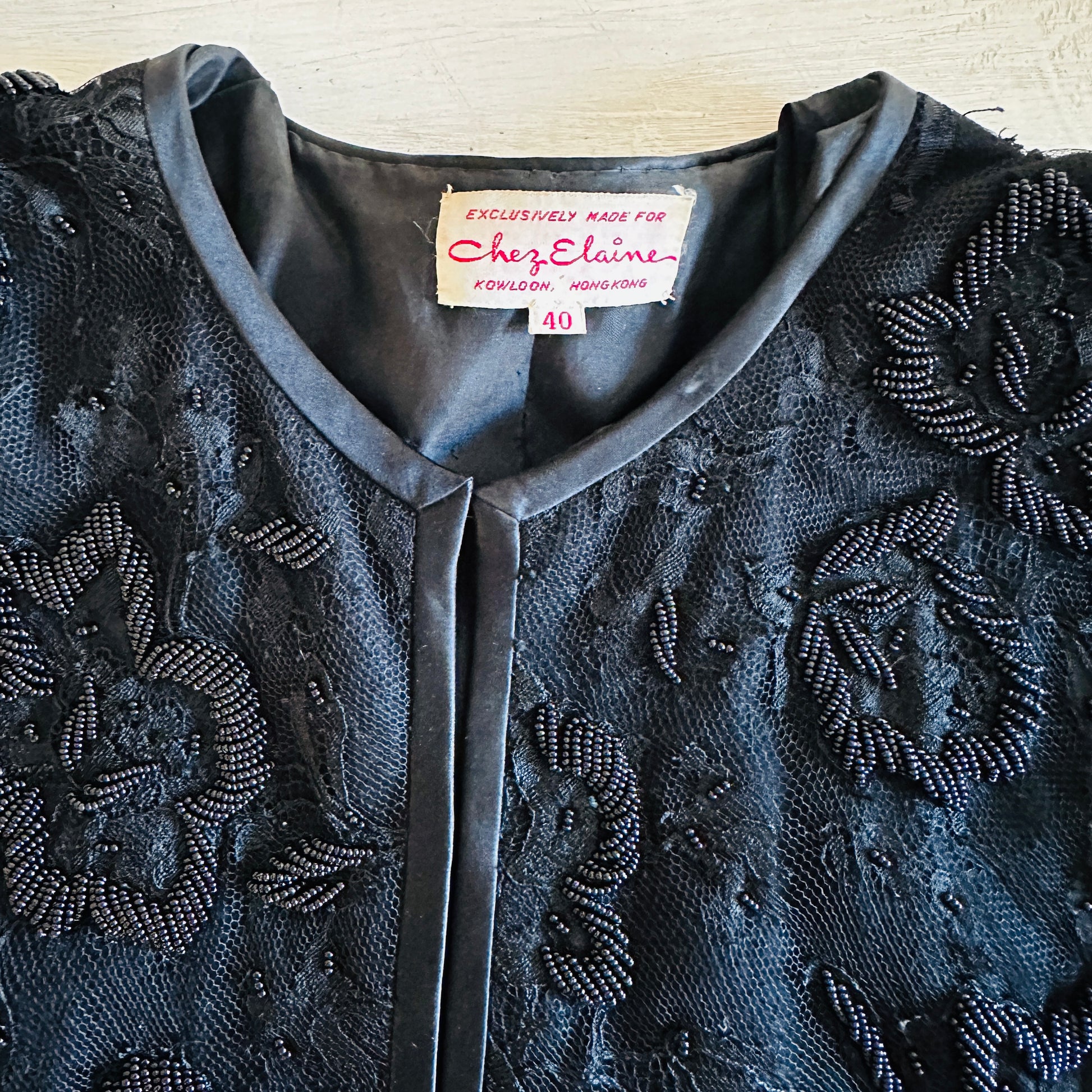 60S VINTAGE BLACK BEADED JACKET // SIZE MEDIUM