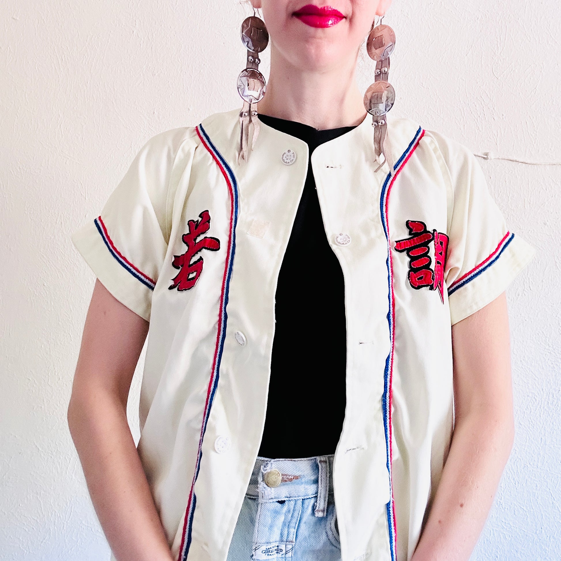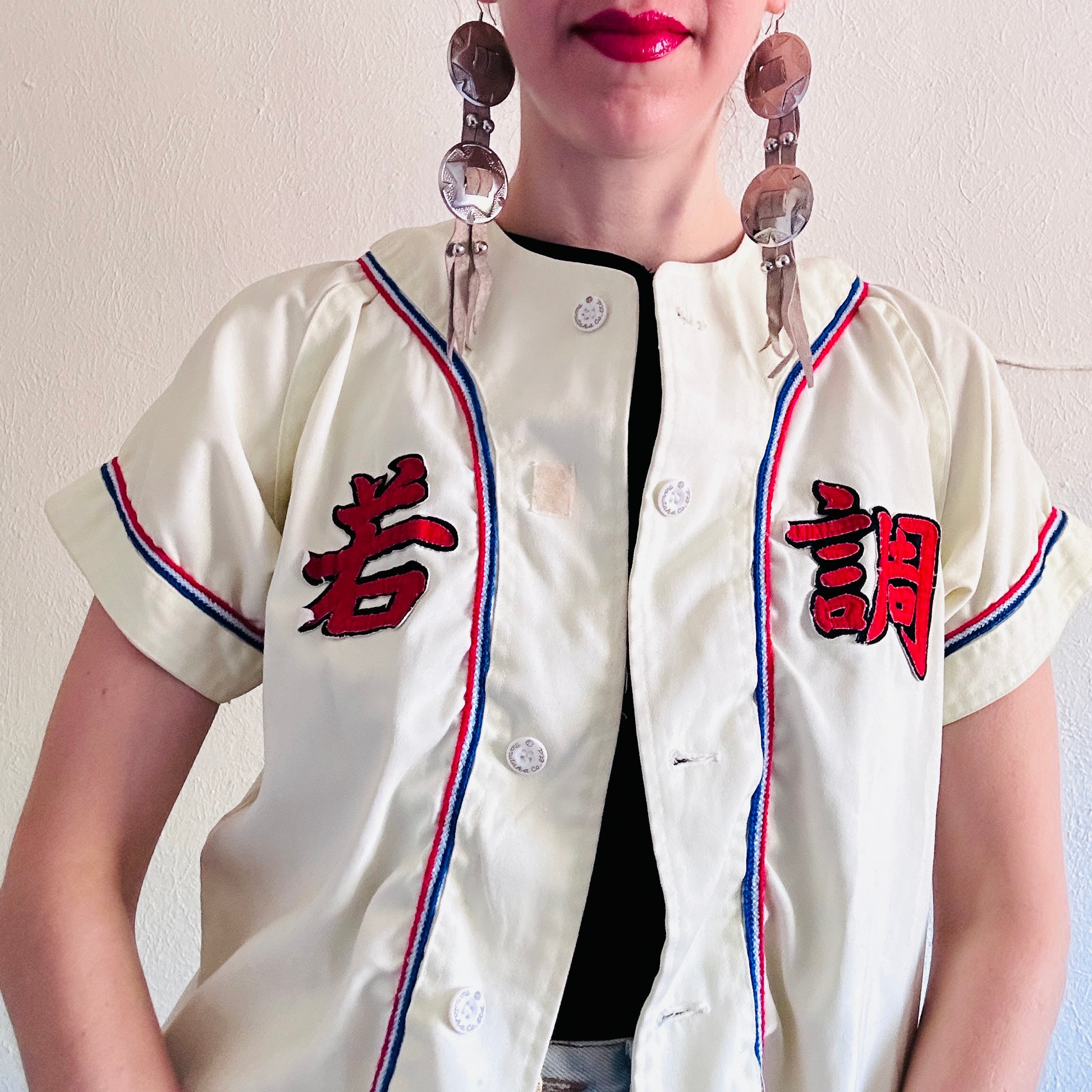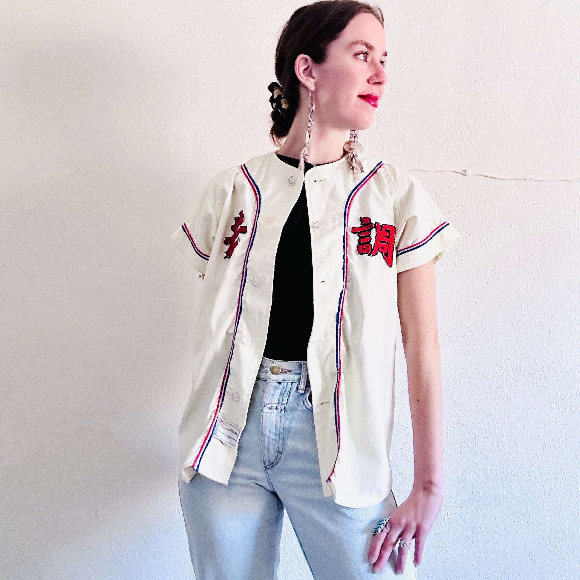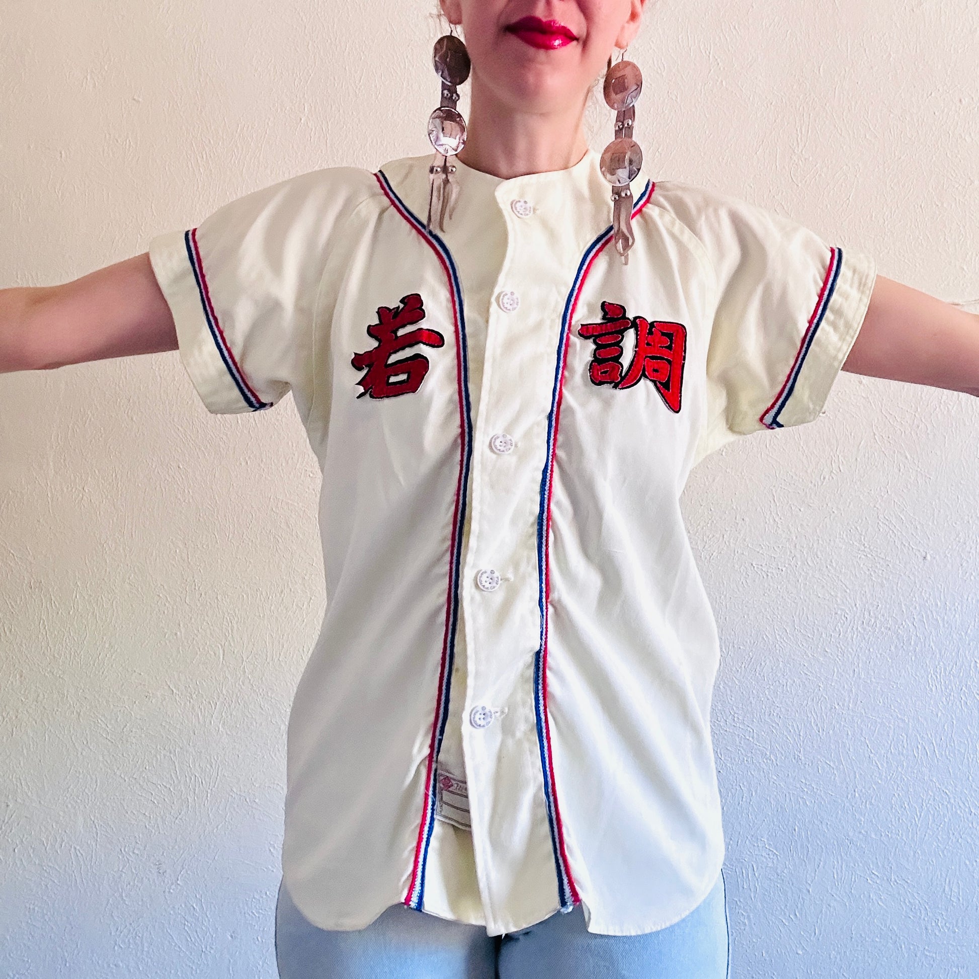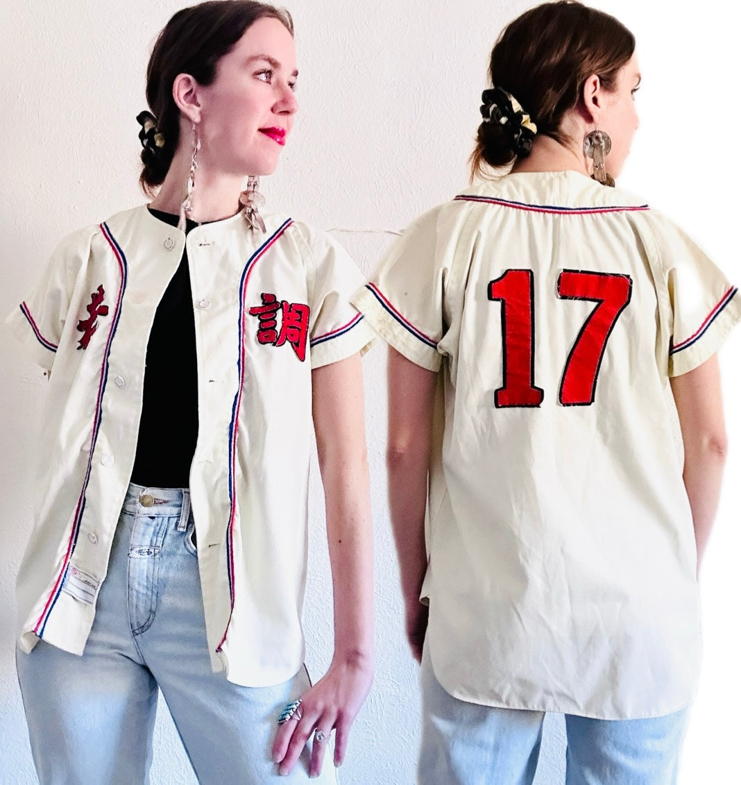 70S VINTAGE JAPANESE BASEBALL JERSEY TOP // SIZE MEDIUM