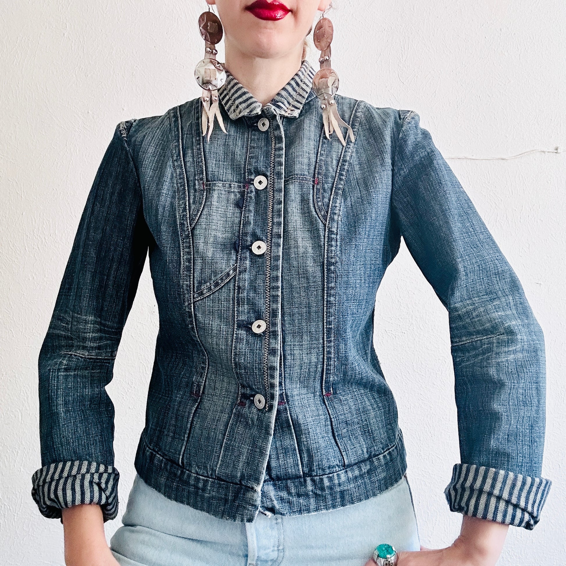 90s vintage denim jean jacket by French designer Marithé Francois Girbaud