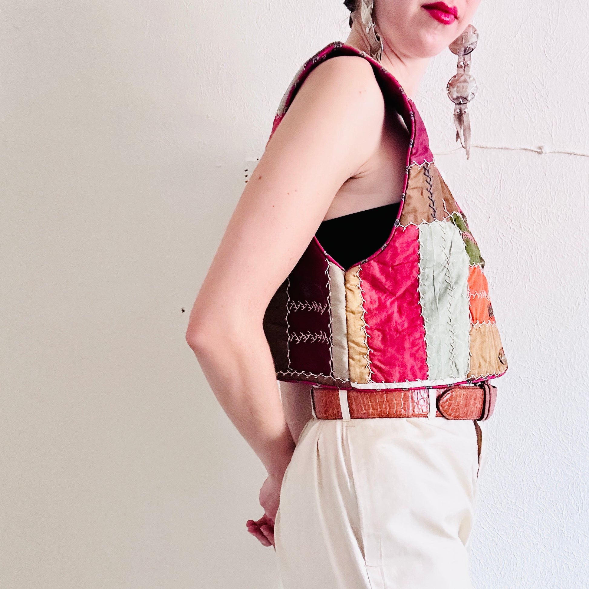 Handmade antique crazy quilt cropped vest