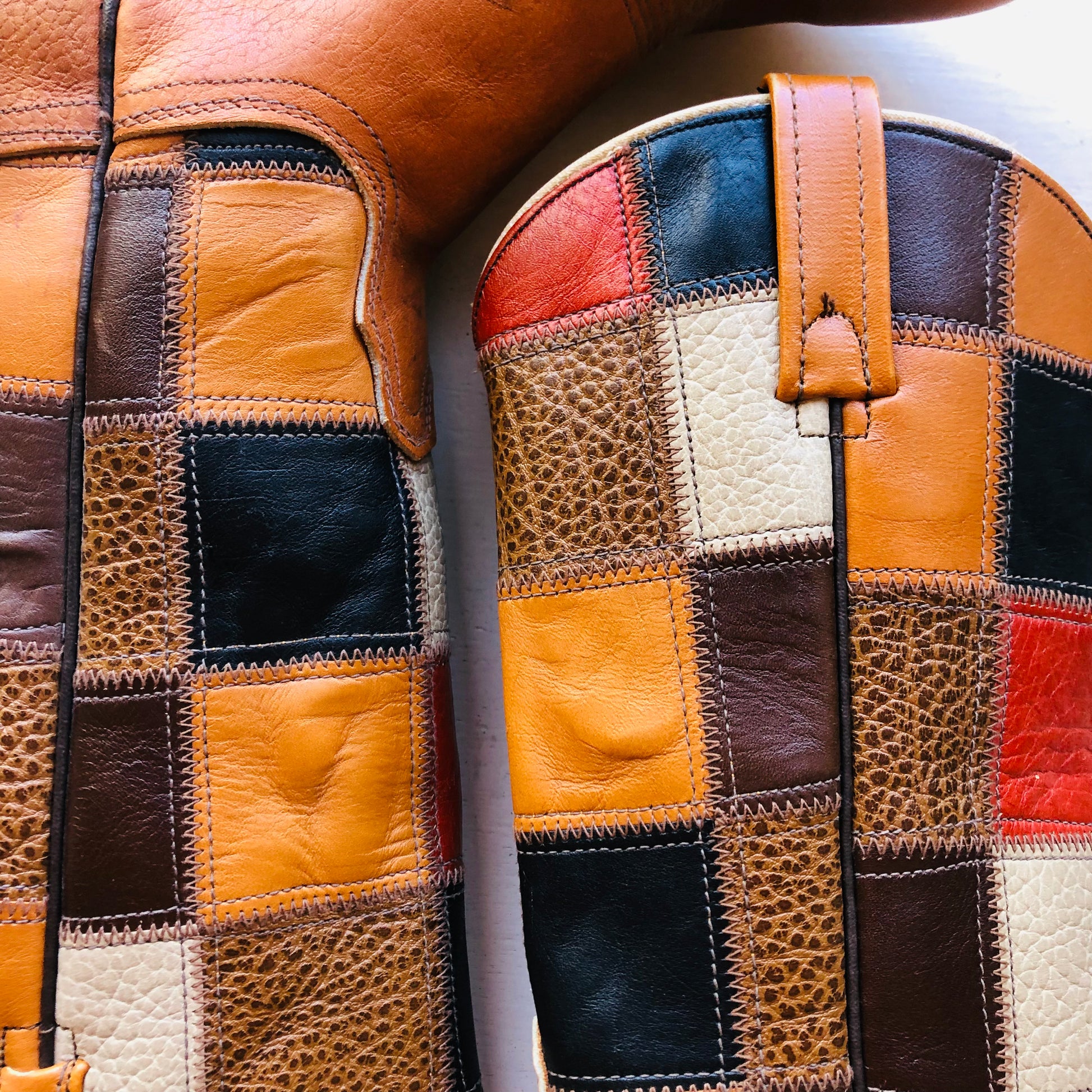 70'S VINTAGE ACME BROWN PATCHWORK LEATHER COWBOY BOOTS // SIZE 7C
