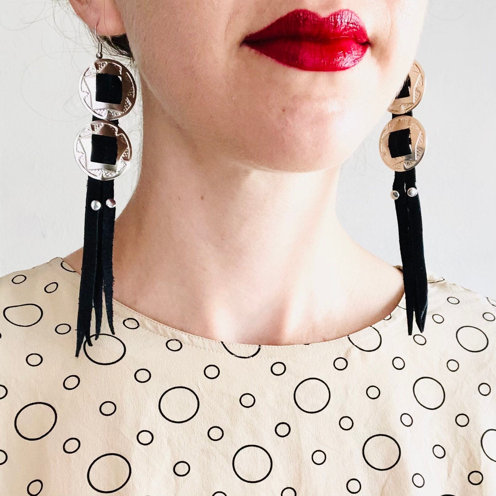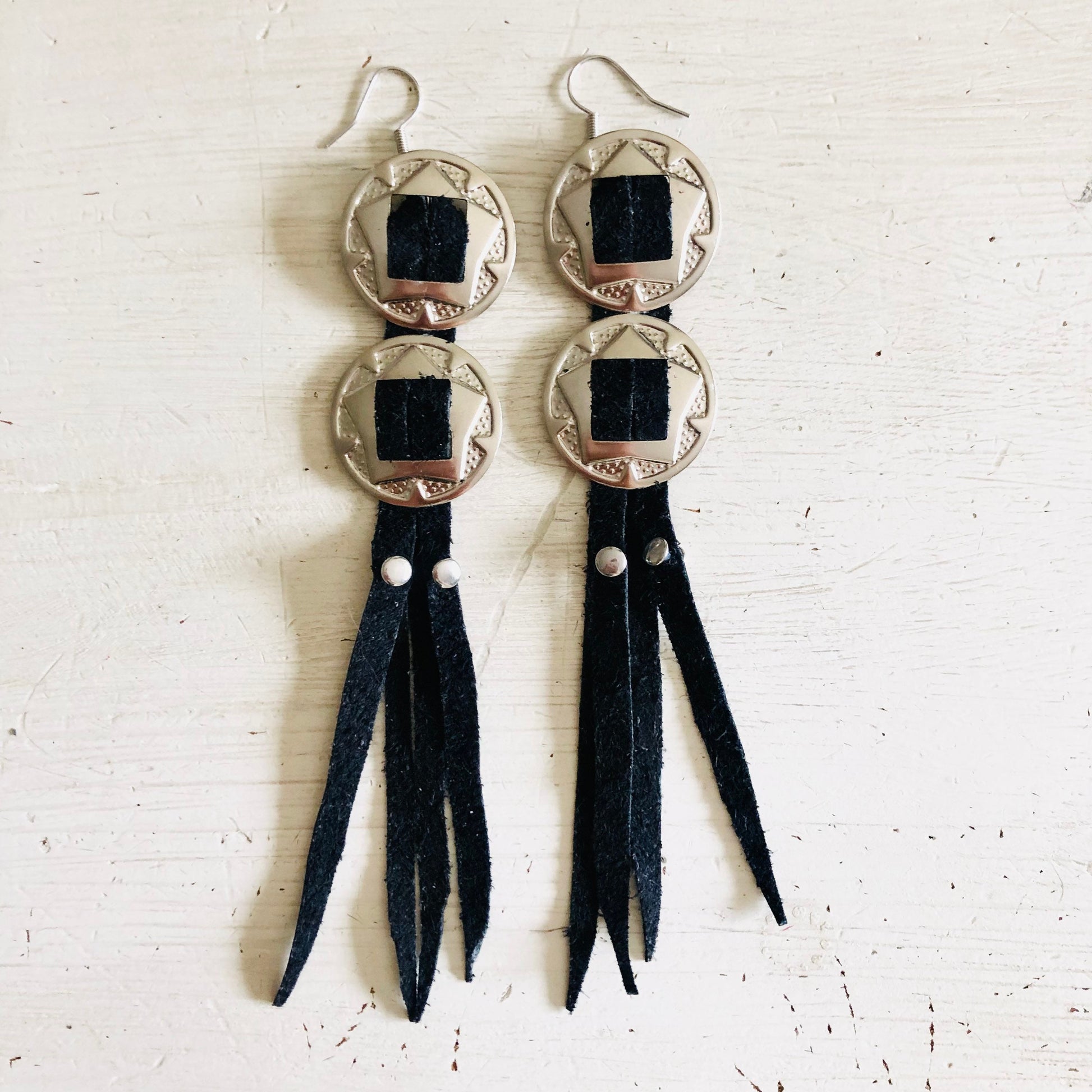SDCV ORIGINAL HANDCRAFTED MINI CONCHO EARRINGS // BLACK