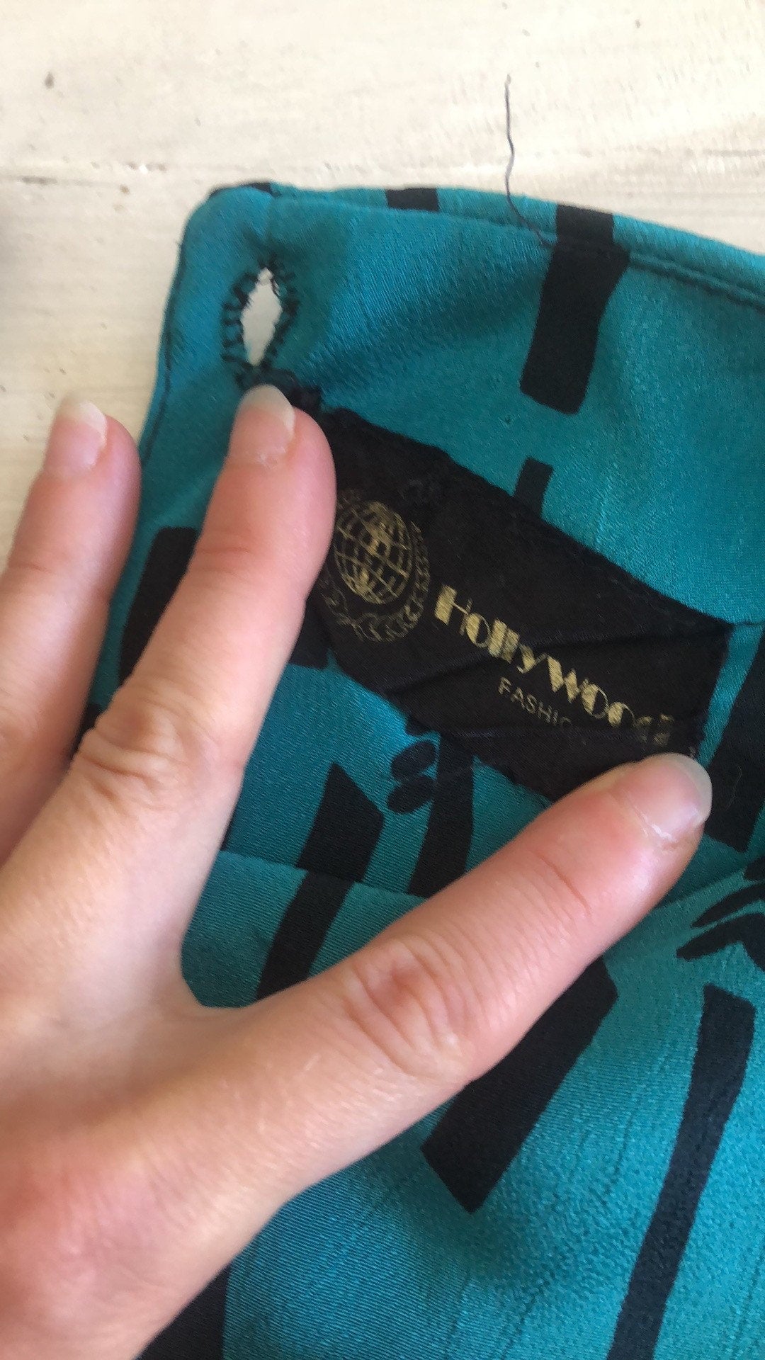 80'S VINTAGE TURQUOISE PRINTED COWL DRESS // SIZE SMALL