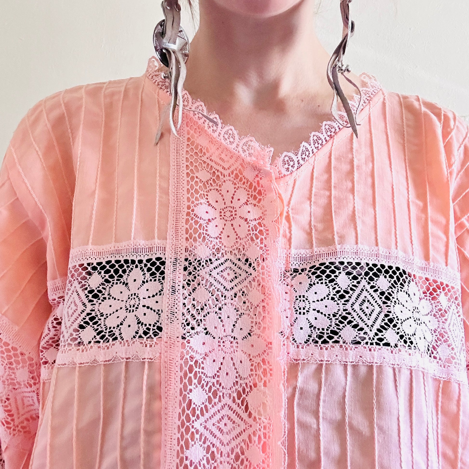 VINTAGE PINK LACE DUSTER JACKET // SIZE XL